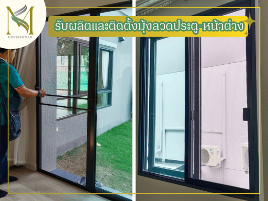 - รับติดตั้งบานมุ้งลวดไฟเบอร์กลาสคุณภาพสูงใช้งานทนทาน ระบายอากาศได้ดี